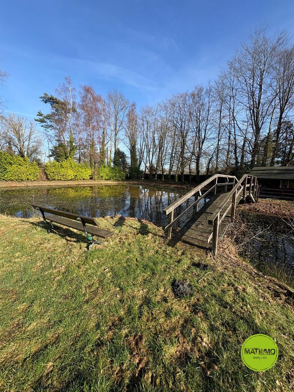 De vijvers en hun omgeving ademen rust en karakter. Zo is er een pittoresk bruggetje dat elegant over het water loopt en een gezellig bankje waar u in alle sereniteit kan genieten van het uitzicht en de natuur rondom u.