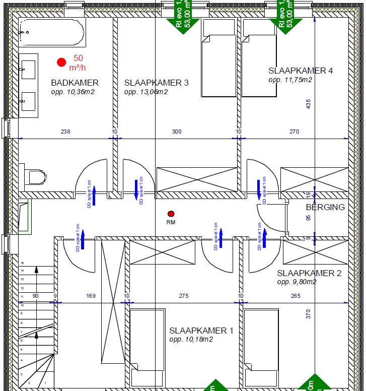 Eerste verdieping: nachthal | 4 slaapkamers | badkamer | extra berging.